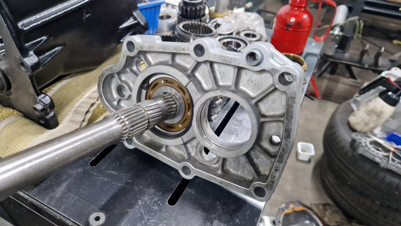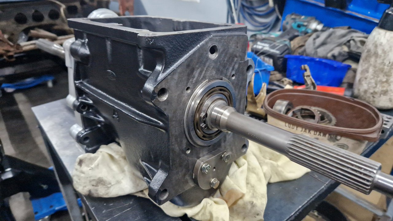 Mogę włożyć wałek wyjściowy do obudowy skrzyni. Położyłem na miejsce uszczelkę.