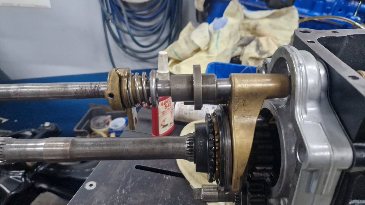 Podczas wkładania pręta zmiany biegów trzeba też zmontować widełki piątego biegu.