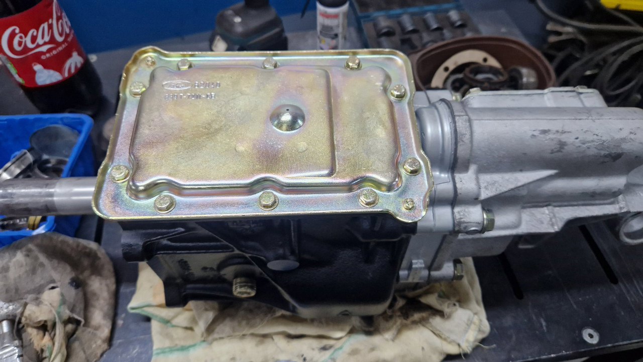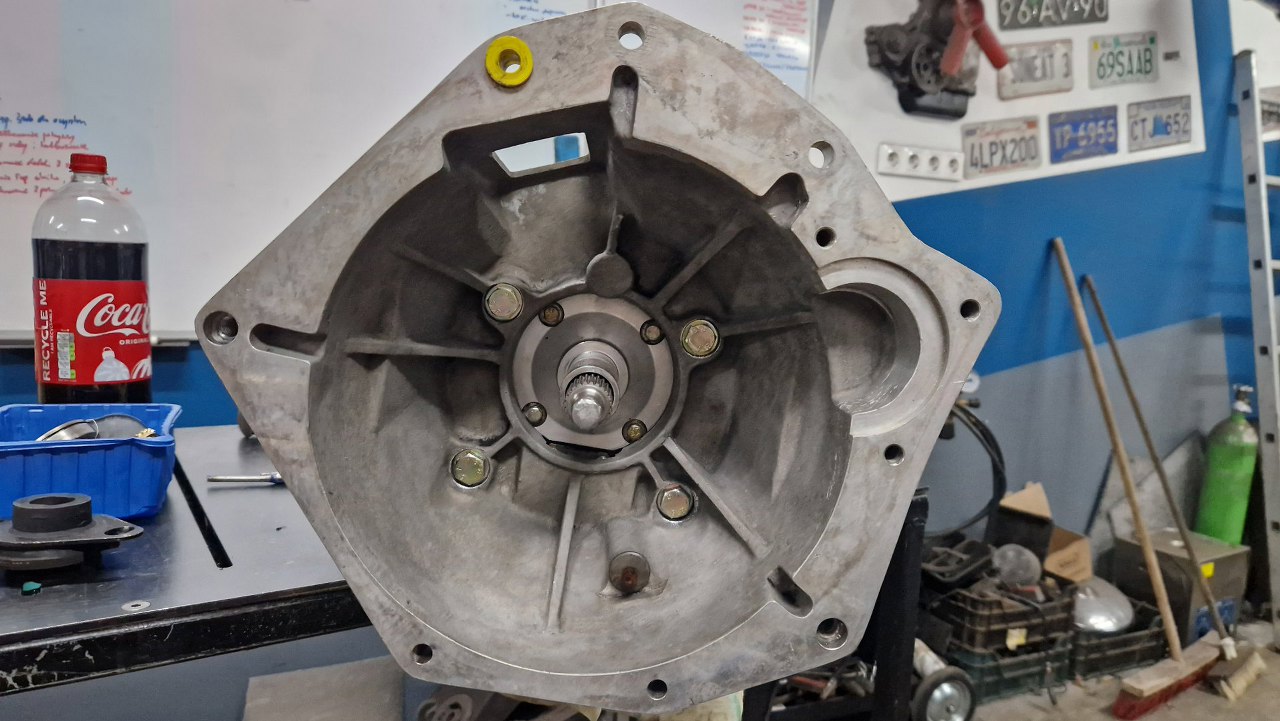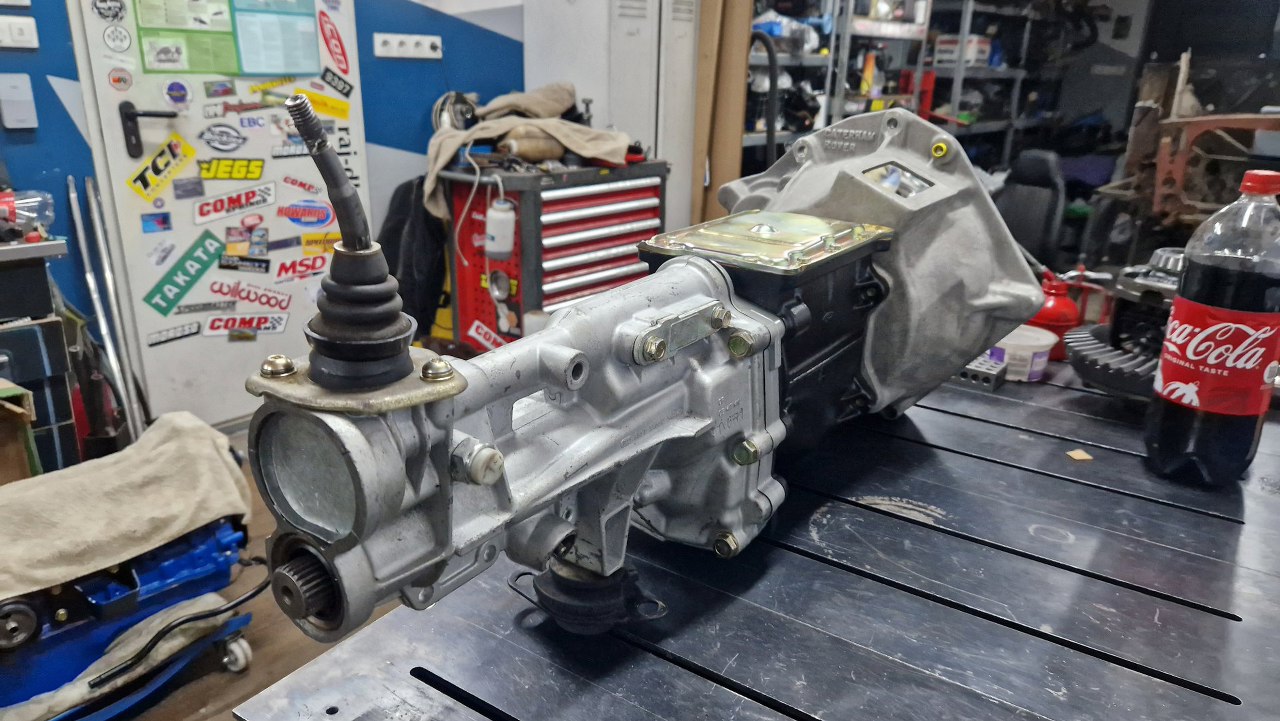 Dostałem przesyłkę ze skrzynią biegów. Jest to dobrze nam już znana fordowska N9, tym razem jednak pochodzi z Caterham Super 7 z 2000r. Dzwon widać po prawej, jest inny, niż fordowskie, bo skrzynia jest spięta z silnikiem Rovera. Historia skrzyni jest dość prosta - wyła, została wyjęta, rozłożona i tak już zostało. Do mnie trafiła na diagnozę.