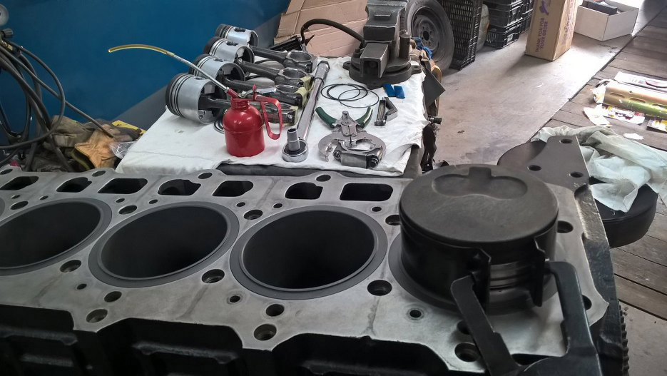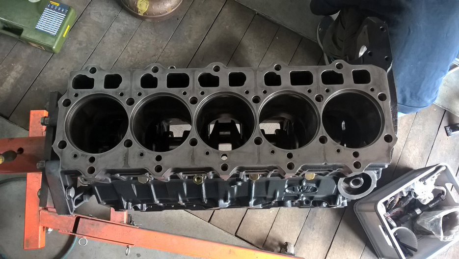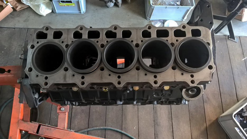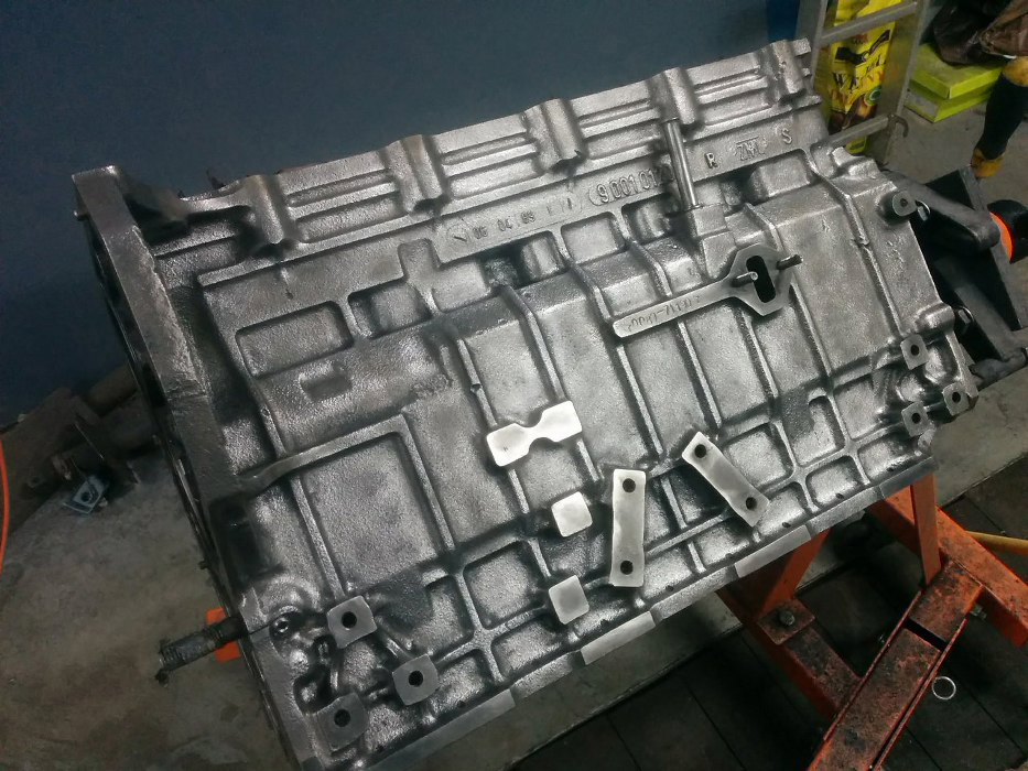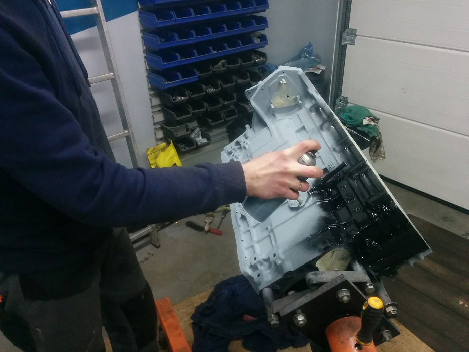Po ogołoceniu bloku ze wszystkiego został on oczyszczony również z rdzy i starej farby. Co ciekawe, w bloku nic się nie szlifuje - ani cylindrów (są luzem), ani stóp wału (są przy wale), ani nawet płaszczyzny pod głowice - głowice uszczelniane są na tulejach cylindrowych.