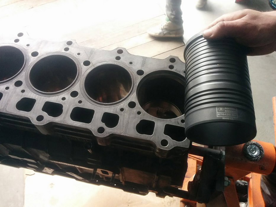 Przygotowaliśmy blok do wkładania tulei cylindrowych. W końcu Michał zdecydował się na wymianę wszystkich pięciu.