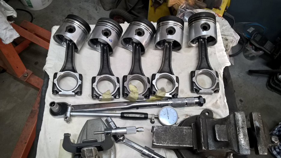 Potem zostały domyte tłoki z korbowodami. Przygotowałem narzędzia pomiarowe.
