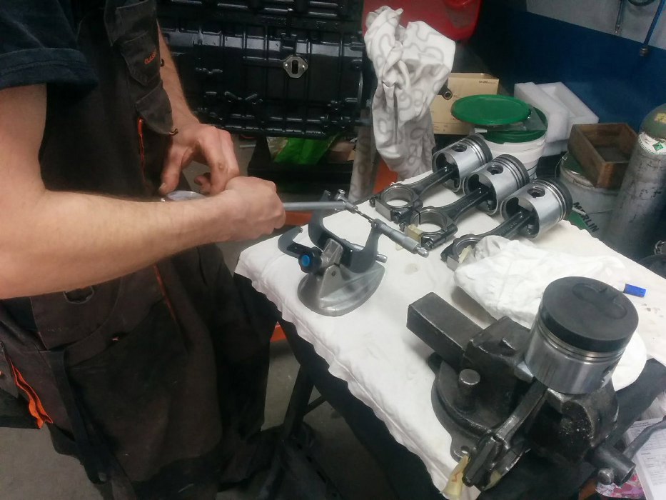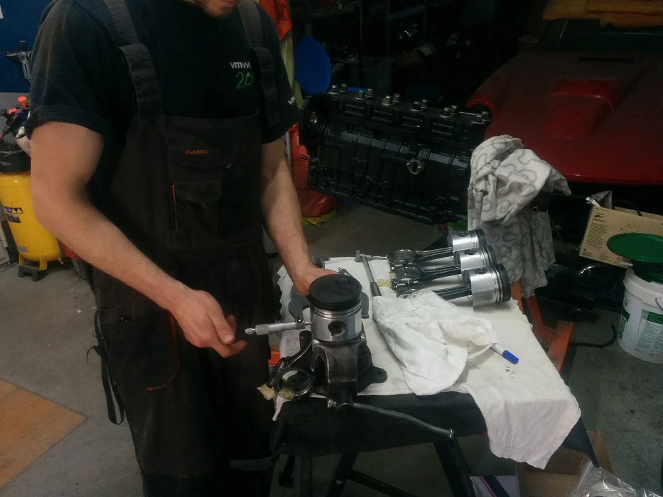 Jak już wszystko było pomierzone z lewej na prawą można było założyć pierścienie na tłoki i włożyć tłoki do silnika.