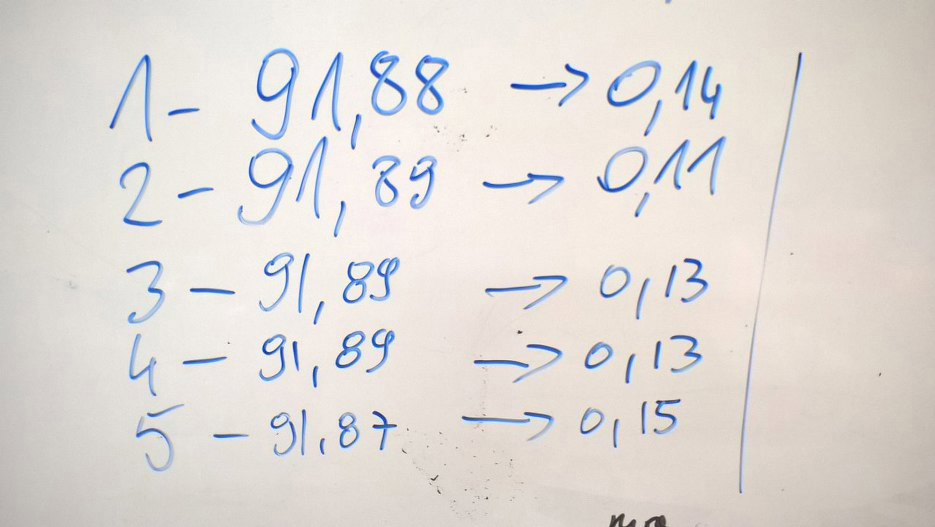 Mamy wyniki pomiarów. Średnica tłoków pośrodku, różnica między tłokiem a tuleją po prawej. Niby dużo, bo jestem przyzwyczajony do ok. 0.04 - 0.06mm dla silników benzynowych, tu idealnie mieści się w specyfikacji silnika.