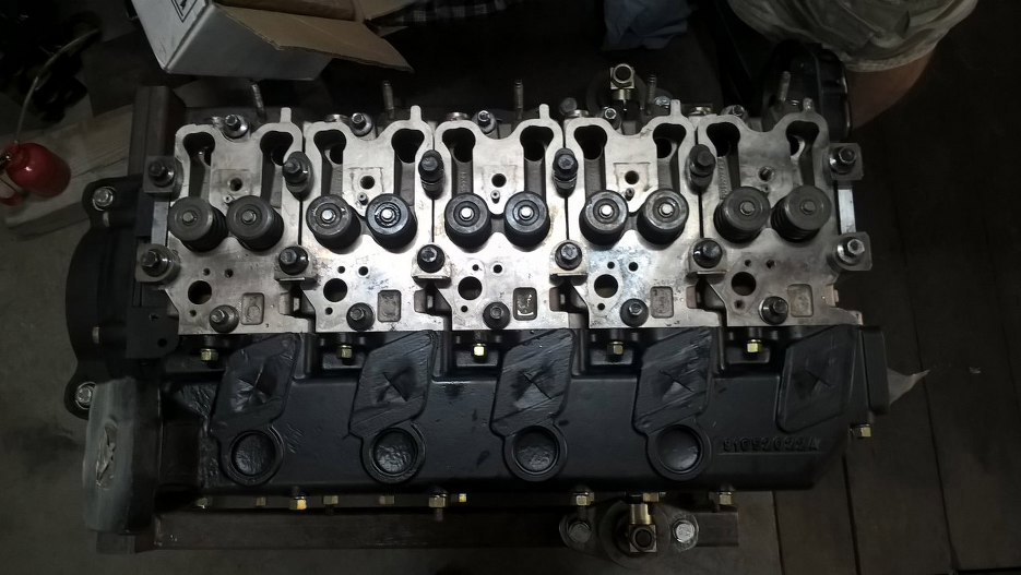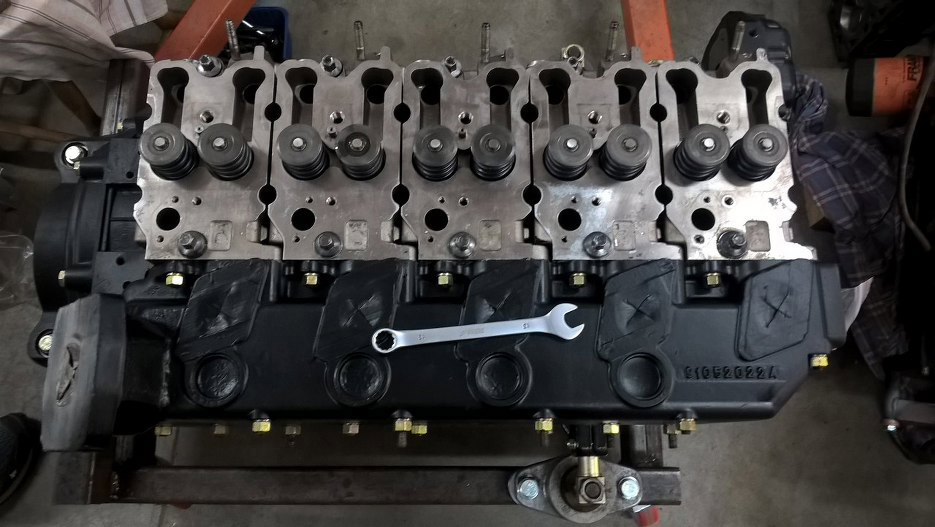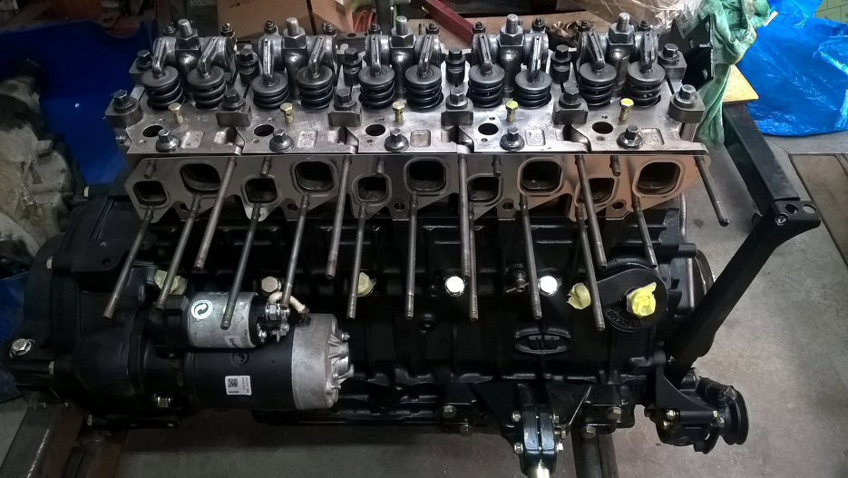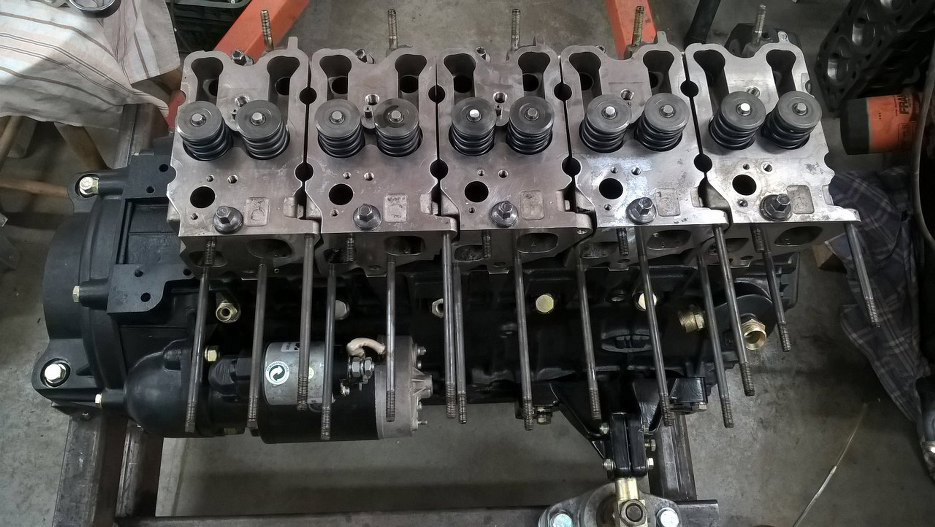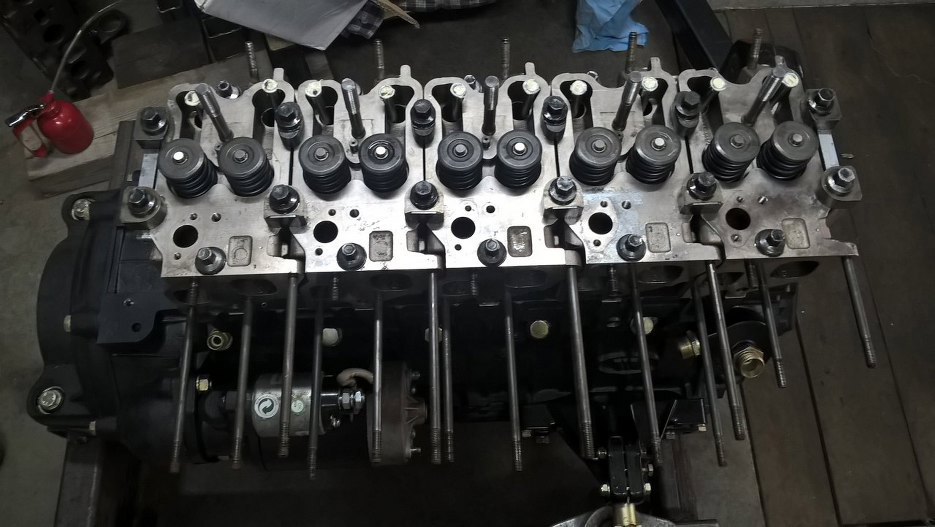 Środkowe śruby trzymają głowice poprzez grube podkładki. Te też trzeba dobrze umieścić, żeby potem nie przeszkadzały w założeniu pokryw zaworów. Same śruby głowicy dokręcone są z pewnym momentem, potem o kąt, następnie znowu o kąt. Ostatnie dokręcenie wymaga niezłego zaparcia się, naprawdę musi być mocno.
