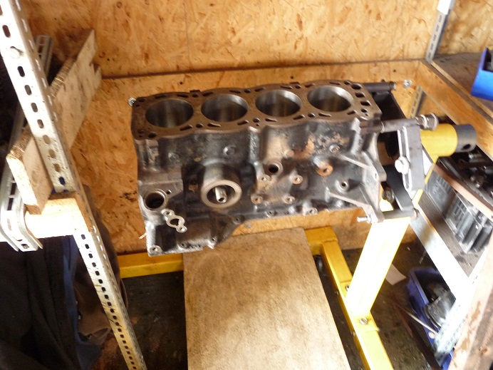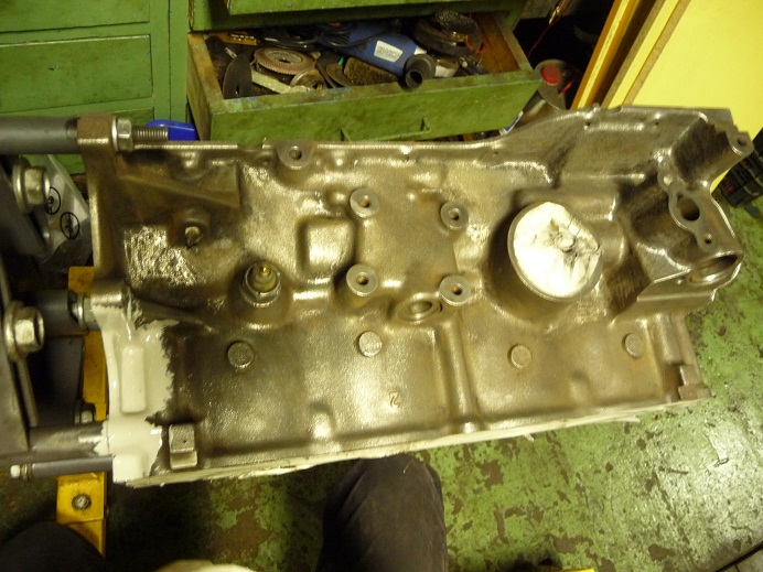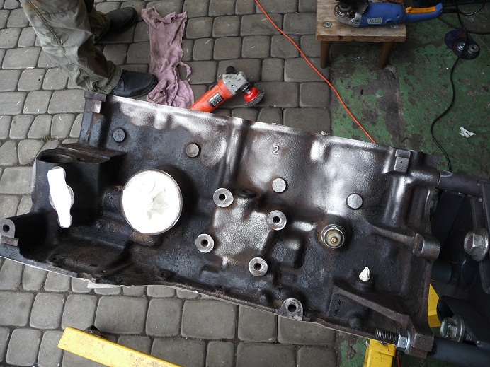 Na początek przypadkiem zostały znalezione nadwymiarowe tłoki, dzięki czemu mogłem się pozbyć zużytych gładzi cylindrów oddając blok do szlifierni. Przy okazji została splanowana płaszczyzna bloku, na którą przychodzi głowica, sprawdzona centryczność podpór wału i wypolerowany wał korbowy. Akurat wał nie był zużyty, mógł zostać w nominalnym wymiarze. Silnik został porządnie wymyty z zewnątrz przez szlifiernię.