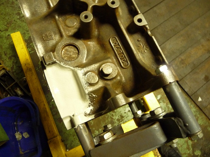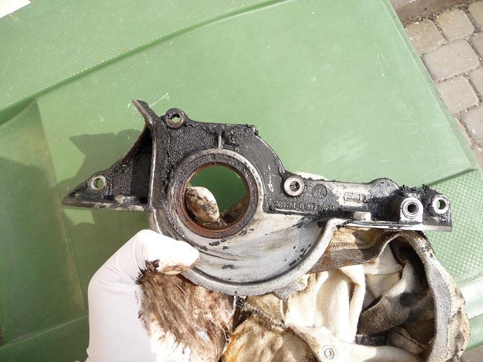 Czyszczenie części może i mało przyjemne, ale niezbędne... Tu widać osłonę wału korbowego jeszcze brudną...