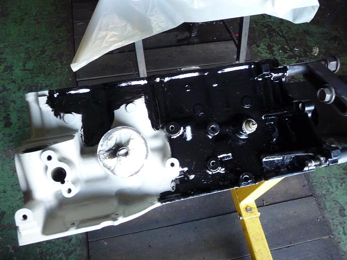 Malowanie bloku - tym razem na kolor. Dwie warstwy czarnego matu.