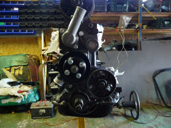 Koło pasowe pompy wody też odnowione. Obudowa termostatu na razie założona, żeby zmotywować się do działania :)