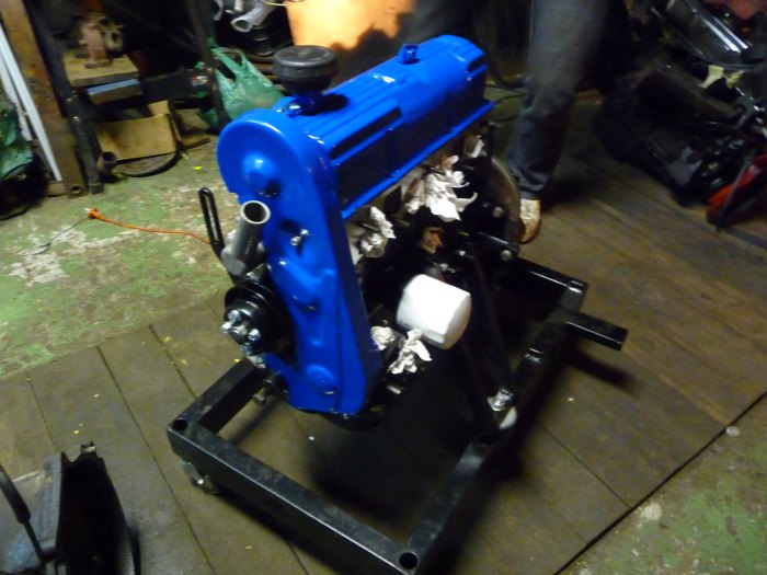 Aha, silnik stoi na stojaku już porządnie przykręcony, koło zamachowe też już założone.