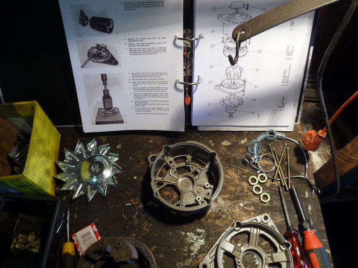 Na wszelki wypadek uzbroiłem się w księgę serwisową (której w końcu nie potrzebowałem, bo jednak alternator jest dość prostą konstrukcją :)