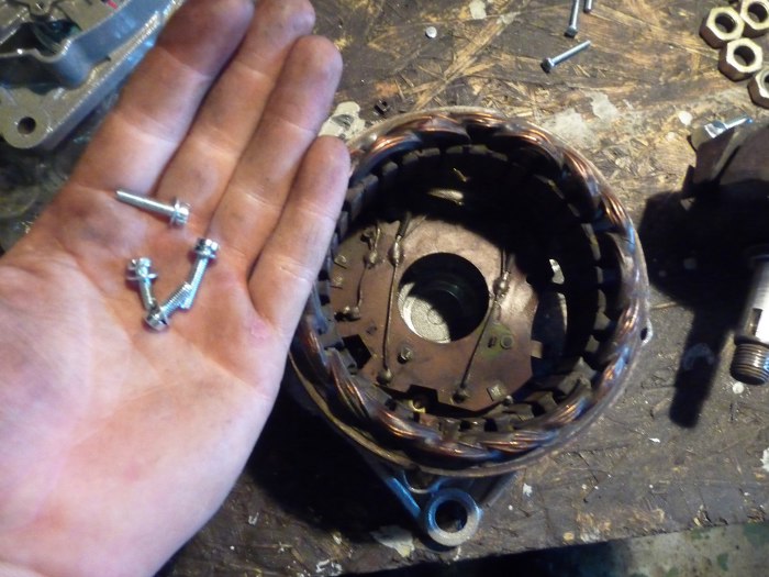 Potem starałem się jakoś domyć szczotkotrzymacz. Nowego to nie wiem, czy się da kupić. Nie wiem, czy szczotki jeszcze będą dobre, niby wyglądają ok, ale może być różnie. Jeśli nie będą ok, to się kupi regulator od nowszego alternatora i przelutuję szczotki.