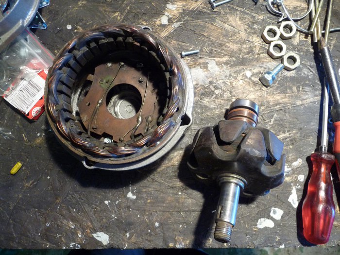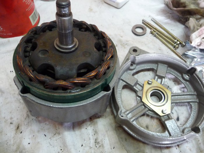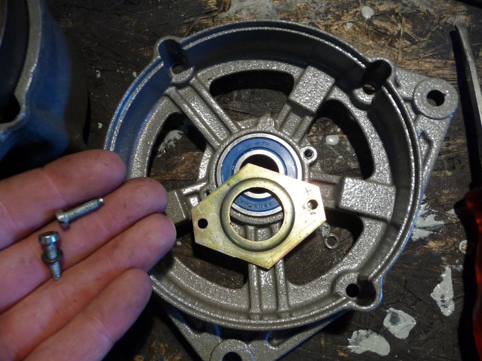 Potem wirnik, z założonym nowym łożyskiem. Na samym dole obudowy może nieco widać blaszkę, która ma być pod łożyskiem.