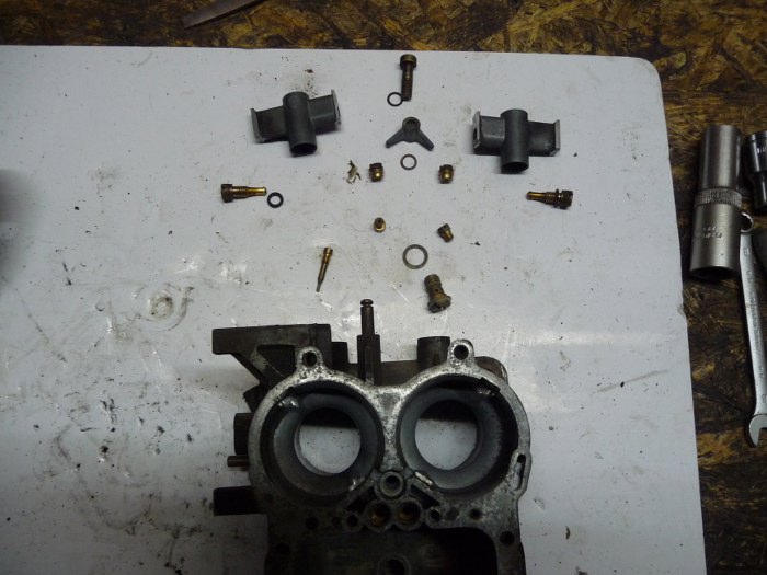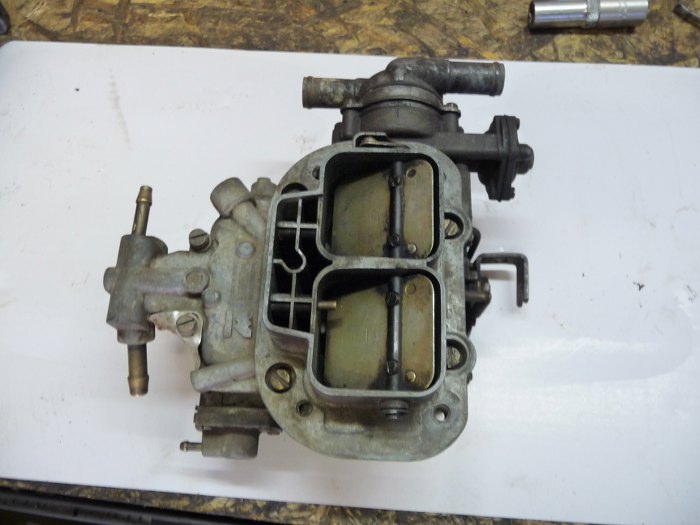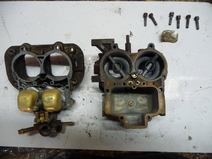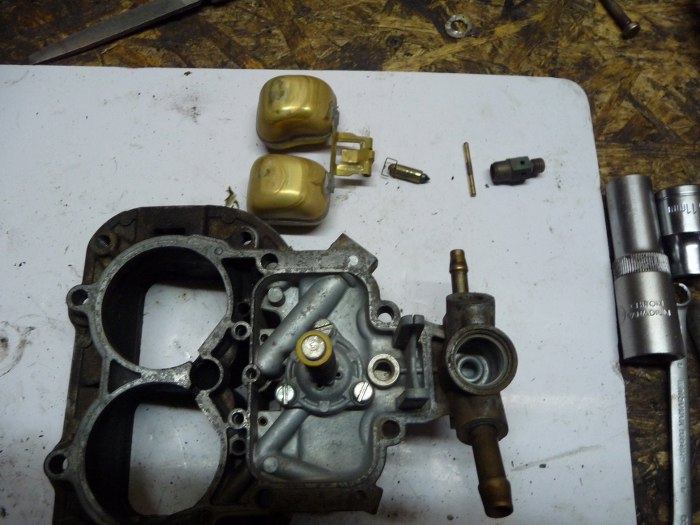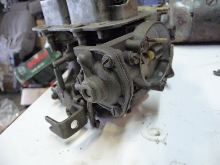 Następnym elementem osprzętu, za który się zabrałem był gaźnik. Weber DGAV 32/36. Co prawda oryginalny gaźnik od 1.6GT jeździ teraz nadal w Taunusie (obecnie z silnikiem 2.0), ale ten posłuży jako dobry egzemplarz do uruchamiania tego silnika, a może docelowo wyremontuję właściwy (lub wymienię dysze na właściwe). :) Dlaczego ten nie jest właściwy - później.