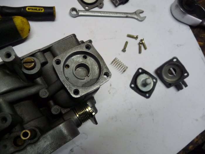 Pora na poskładanie spodu pokruwy gaźnika. Power valve - musi być używka, bo nowy kosztuje koło 200zł. Czwarta membranka z kolei okazała się zdatna do użytku.