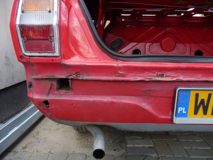 I zdjęte wszystko z tyłu. Widać, że blacha w tym miejscu nie jest najmocniejszą stroną tego samochodu :)