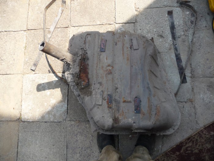 Wyciągnąłem zbiornik paliwa. O dziwo nie urwałem żadnej śruby, a te wieszaki są zazwyczaj bardzo przekorodowane. Za to błota na zbiorniku jest pod dostatkiem.