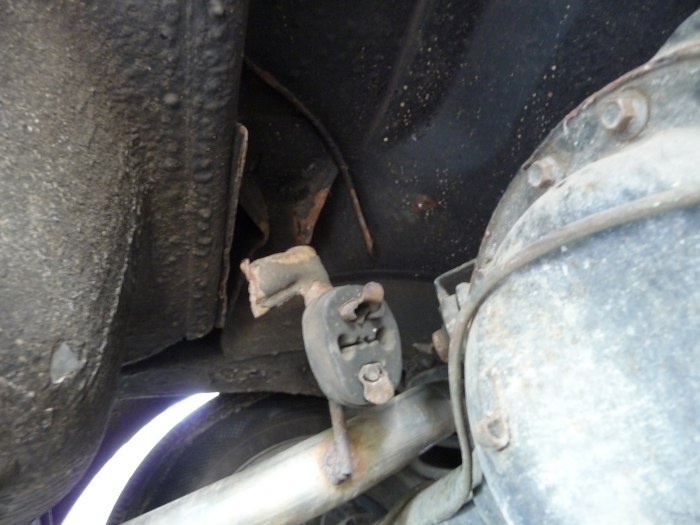 Zacząłem też zdejmować wydech. Tu akurat widać wieszak, który na moje oko jest patencony.