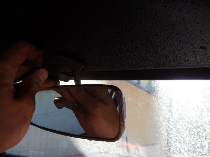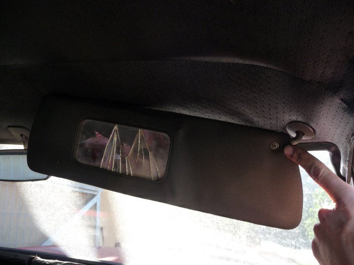 Z przodu zdejmuję osłony przeciwsłoneczne. Są one lekko zdeformowane przy mocowaniu, ale może jeszcze będą dobre. Gorzej z lusterkiem dla pasażera.