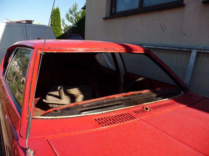 Potem wyjąłem przednią szybę, i nawet jej też nie stłukłem :) Ta szyba też była uszczelniona tym lepkim świństwem.