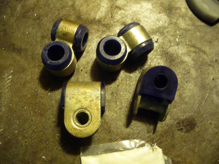 Potem mocowania stabilizatora. Oryginalne gumki były bardzo sparciałe, a niestety nowe nie są dostępne. Jedyną możliwością było zastosowanie poliuretanów.
