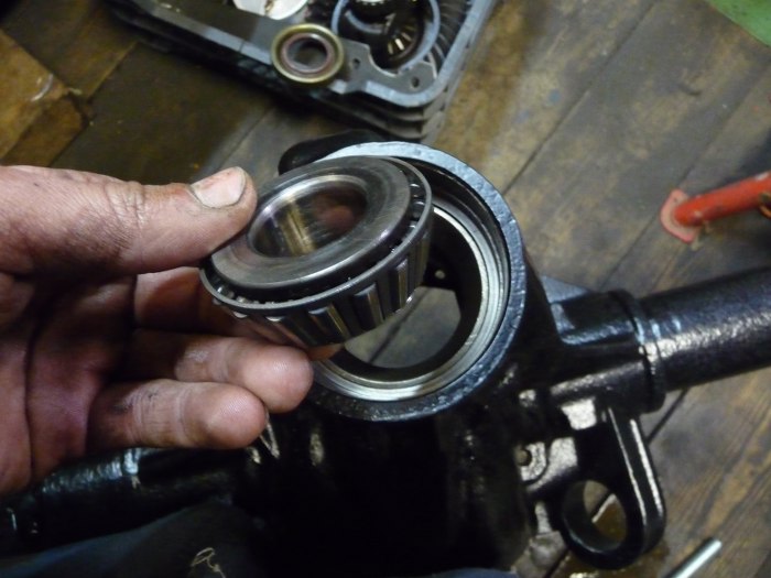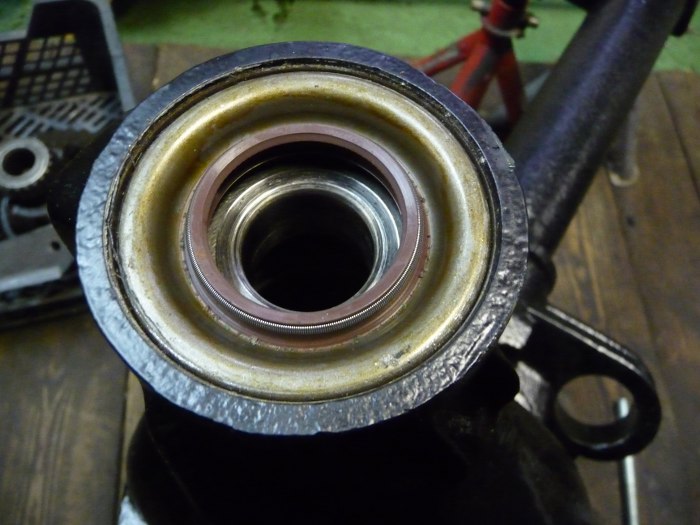 Łożysko przed włożeniem posmarowałem specjalnym klejem. Jedno łożysko weszło bez walki, niestety drugie stawiało totalny opór. Dopiero po jego wymianie na nowe mogłem poskładać most.