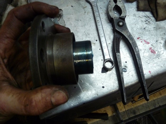 Potem flansza, do której przykręcany jest wał napędowy. Płaszczyznę, która wchodzi w uszczelniacz posmarowałem smarem, żeby nie zniszczyć uszczelniacza.
