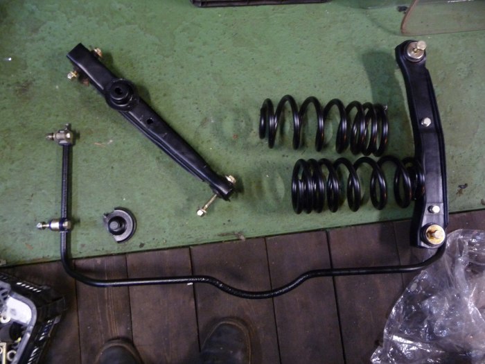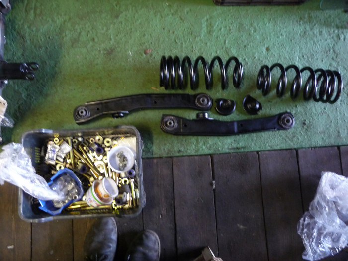 Przygotowałem wahacze wzdłużne, sprężyny i masę ocynkowanych śrubek.