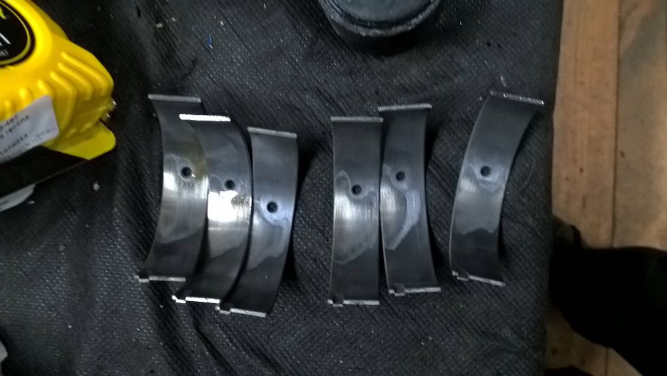 I tu niemiła niespodzianka - panewki korbowe od góry jednak są nieco wytarte. Nic poważnego, ale skoro już tu jestem, to trzeba je wymienić. Przez następne 20 lat i kilkaset tysięcy kilometrów niech tu nikt nie zagląda :).