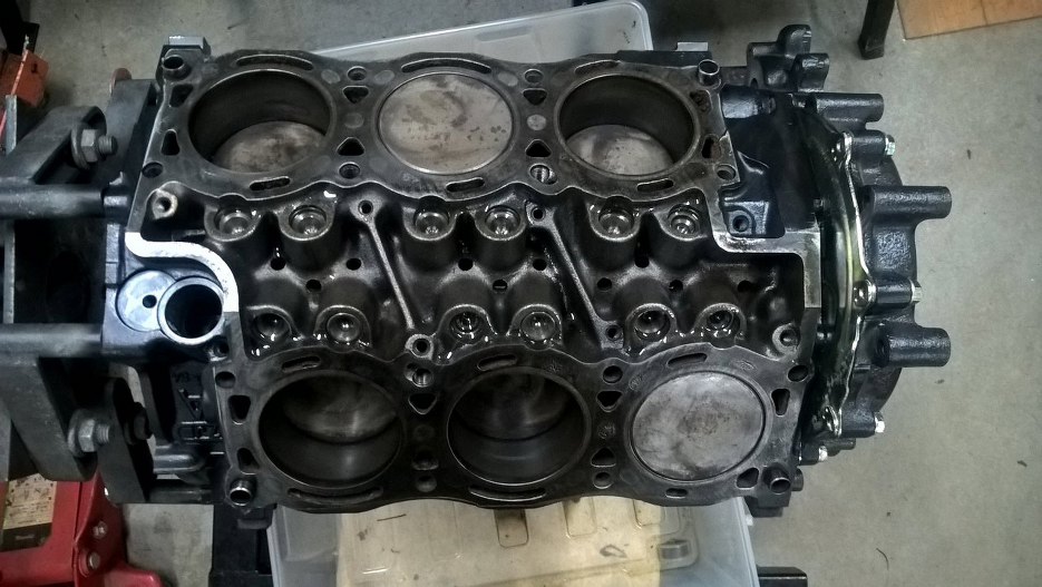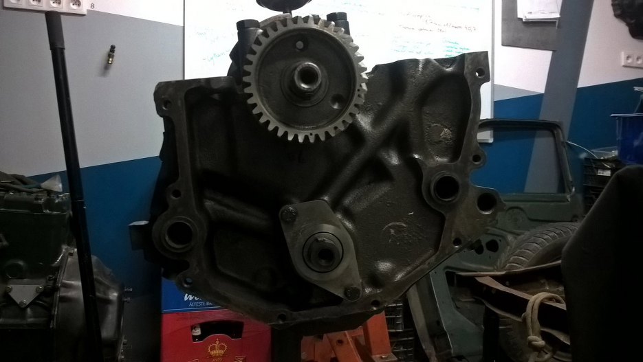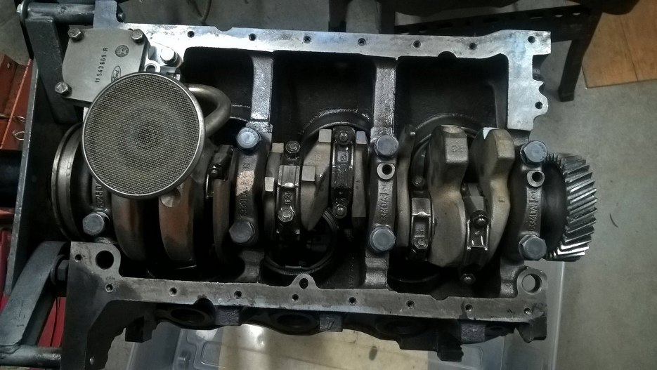 Bardzo długo nie mogłem się za ten silnik wziąć. Cały czas pełne ręce roboty, a wiem, że ten silnik nie jest zupełnie pilny. Po ostatniej aktualizacji silnik został umyty i pomalowany z zewnątrz i tak leżał. W międzyczasie przeprowadziłem się do nowego garażu, a on wciąż leżał. I trochę mnie już wkurzał, bo leżał otwarty. nie chciałem, żeby się kurzył, więc w końcu mnie sumienie ruszyło i trochę do przodu temat popchnąłem. Silnik został porządnie umyty w środku, mimo, że tłoków nie wyjmowałem. Nie chciałem ich ruszać, bo budżet w tym projekcie jest mocno ograniczony. To trochę utrudnia prace, ale silnik rzeczywiście jest na tyle mało zużyty, że warto trochę się pomęczyć. Po myciu jednak wał został wyjęty, żeby nie ryzykować brudu w panewkach.