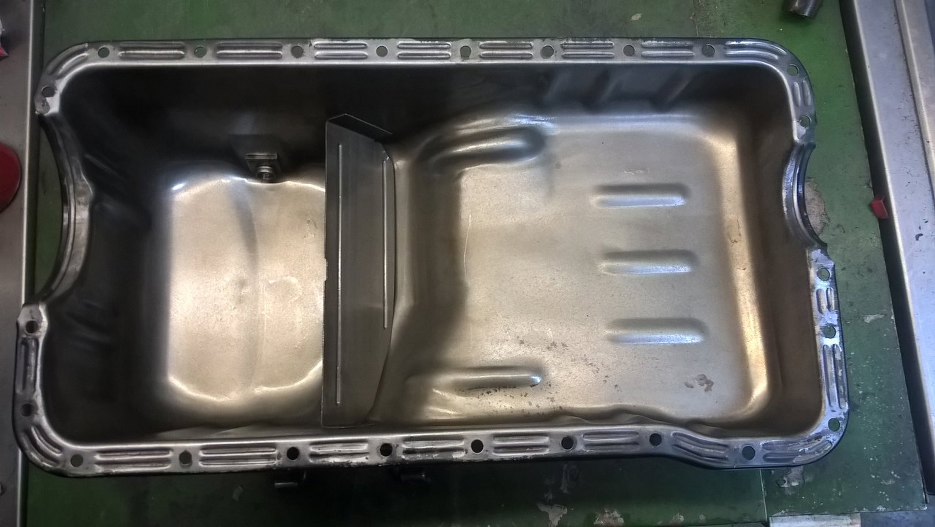 Przygotowałem też miskę olejową. Dokładnie ją umyłem po piaskowaniu, żeby w zakamarkach nie został żaden ślad pyłu.