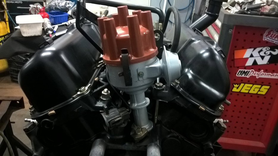 Po założeniu kopułki aparatu zapłonowego mogłem połączyć wszystkie przewody zapłonowe. Brakuje mi do nich jeszcze dwóch spinek mocujących. Uzupełnię te braki niedługo.