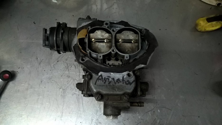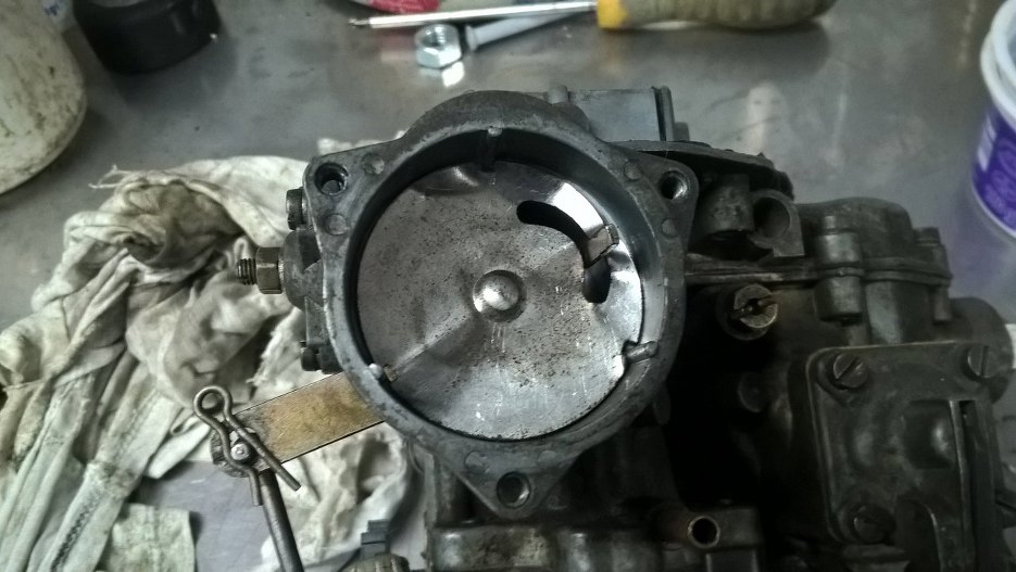 Gaźnik w całej okazałości. Kolejne zaskoczenie to wycięte klapki ssania... oj.