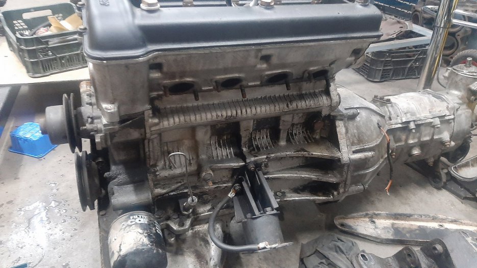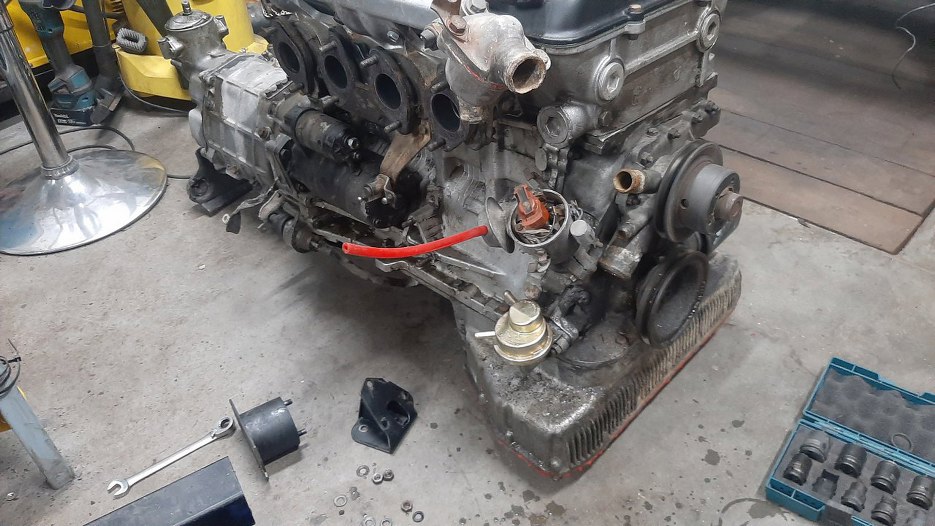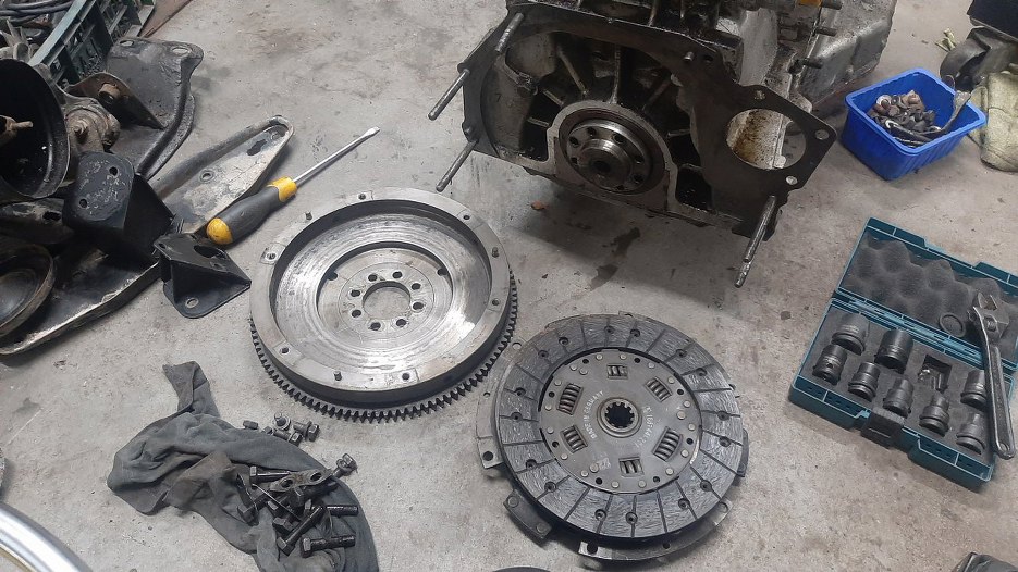 Mam wyciągnięty silnik ze skrzynią. Ustaliłem z Sebastianem, że przeglądam to wszystko po swojemu, nie unikając zakamarków. Czyli rozkręcamy...