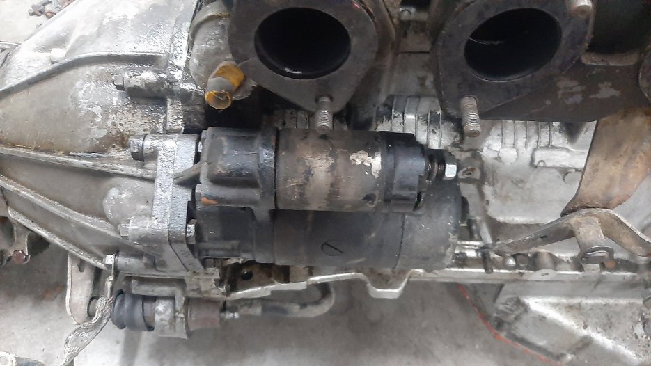 Po zdjęciu rozrusznika mogę już odkręcić skrzynię od silnika. Kabelki wystające z obudowy sprzęgła są od czujnika wstecznego.