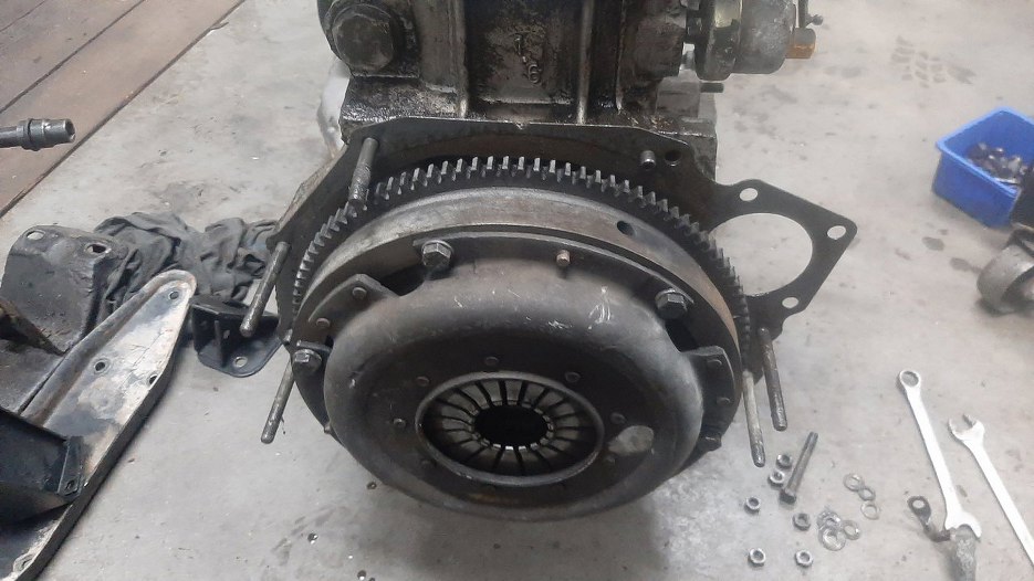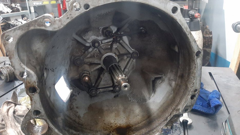 Wrzuciłem skrzynię na stół. Łożysko sprzęgła jest trochę głośne, trzeba będzie wymienić.