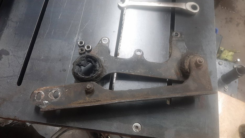Odkręciłem mocowanie wydechu. Widać dokładnie w jakim stanie są tuleje gumowe.