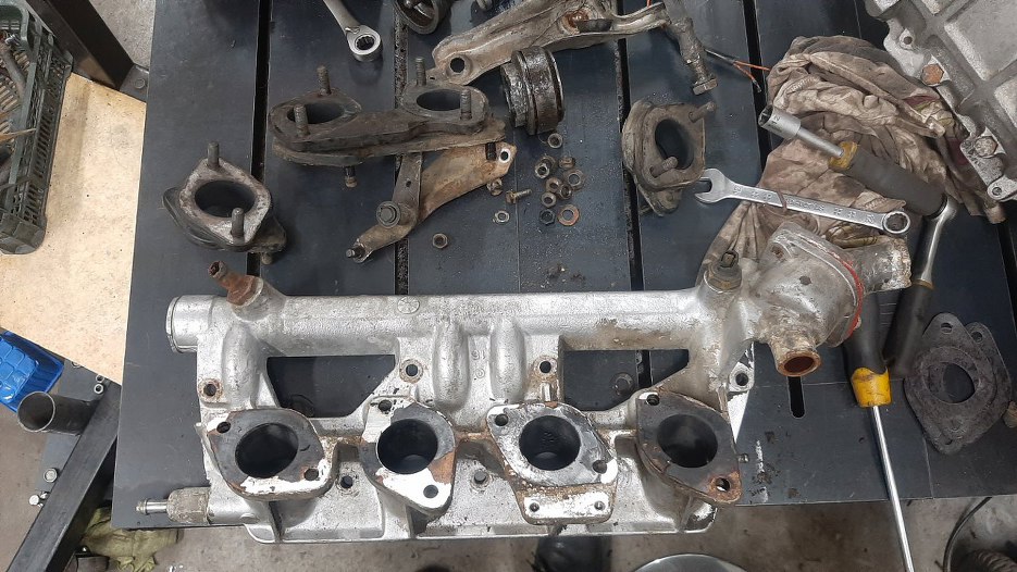 Poświęcę teraz chwilę na kolektor dolotowy. Póki co zmierzam do tego, żeby jak najwięcej części przygotować do piaskowania czy do ocynkowania, dlatego tak rozkręcam trochę na oślep.