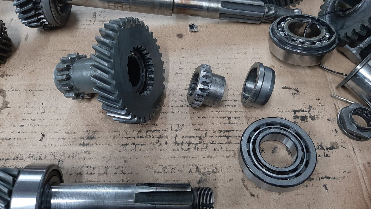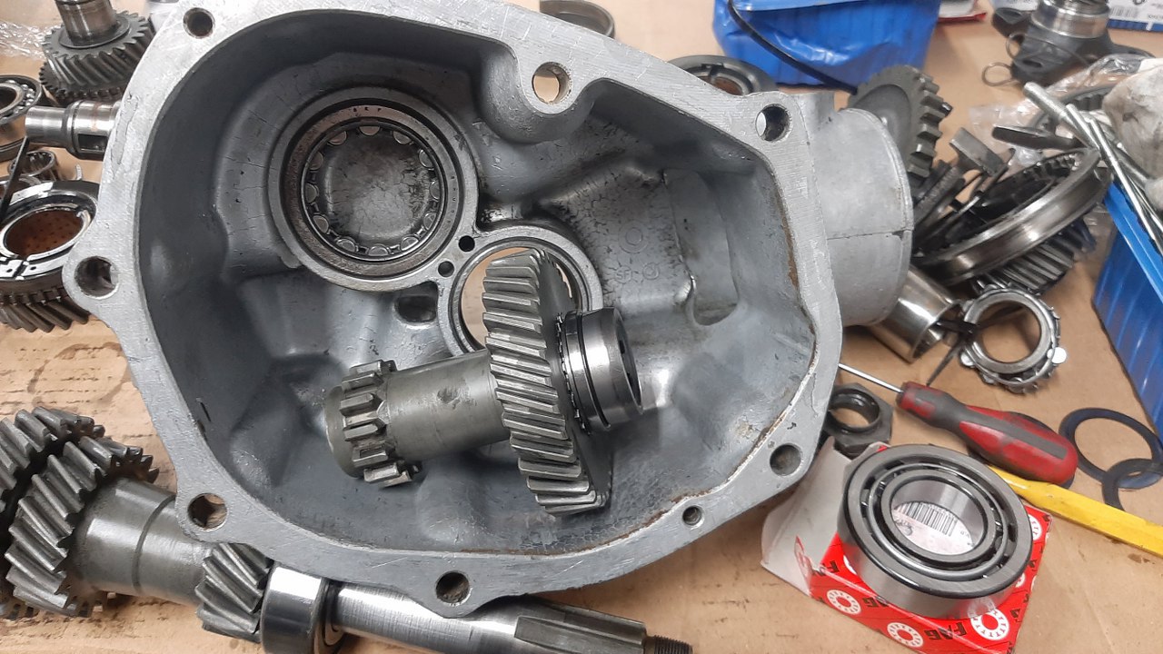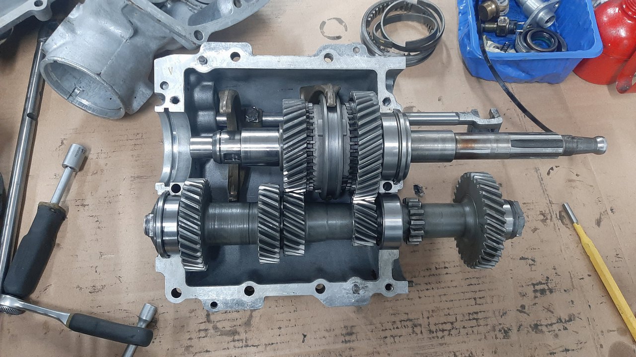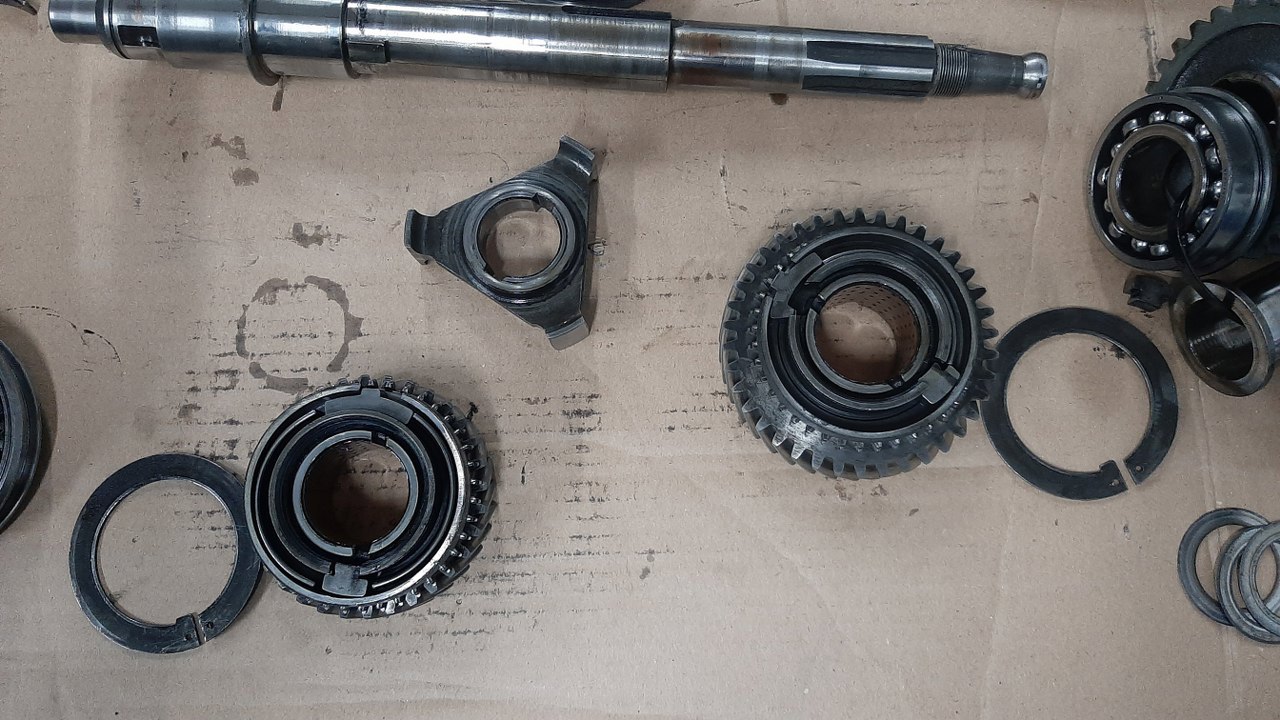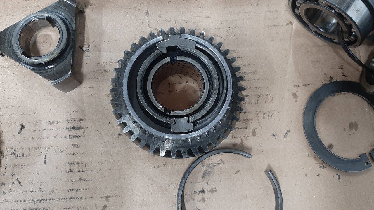 Potem się okazało, że pozostałe synchronizatory też wypadałoby wymienić, a mam tylko te dwa. Porzucam zatem wałek wyjściowy i zabieram się za choinkę.