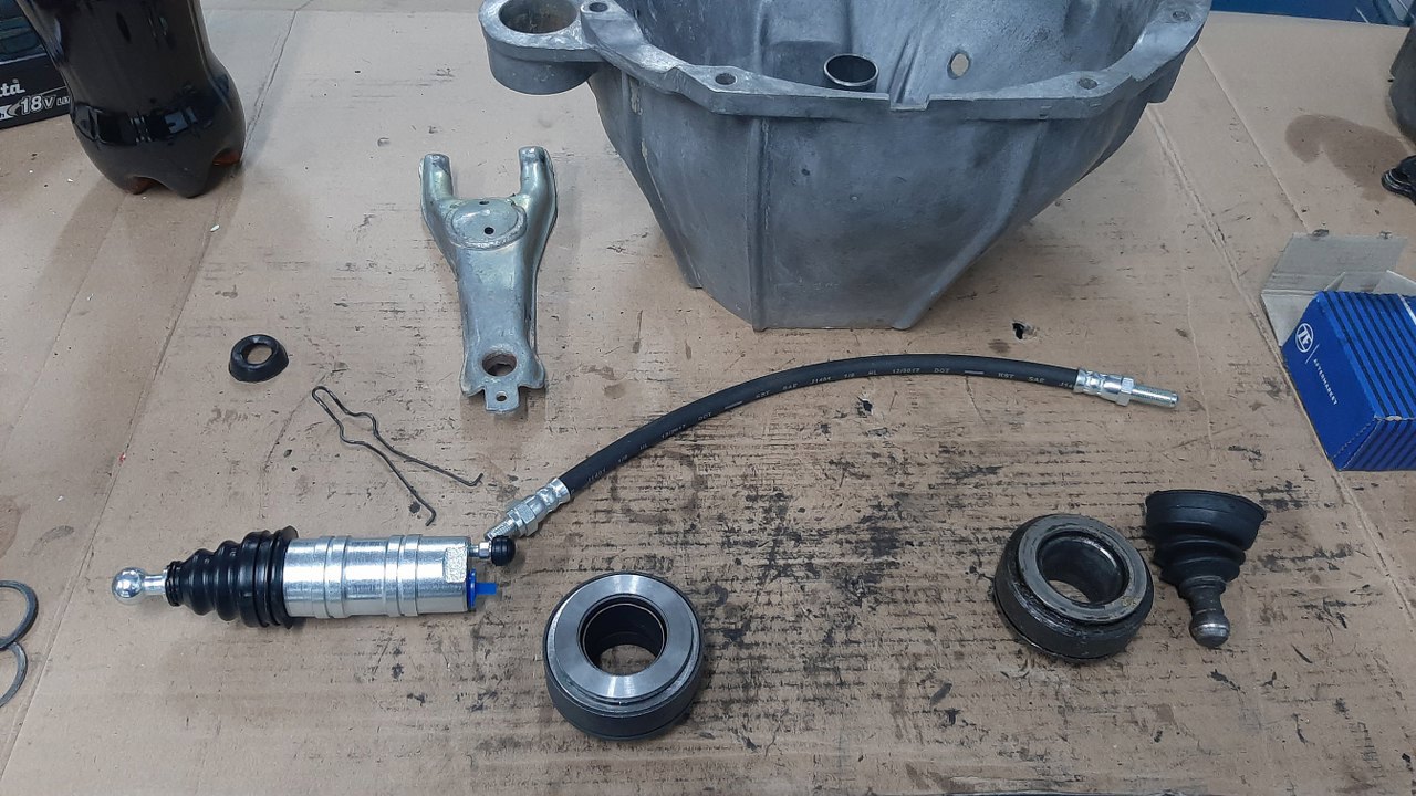 Albo mogę też przygotować sprzęgło. Niestety tu okazało się, że przysłano niewłaściwy przewód elastyczny wysprzęglika i trzeba go zamówić od nowa. Ale nowy wysprzęglik i nowe łożysko sprzęgła są.