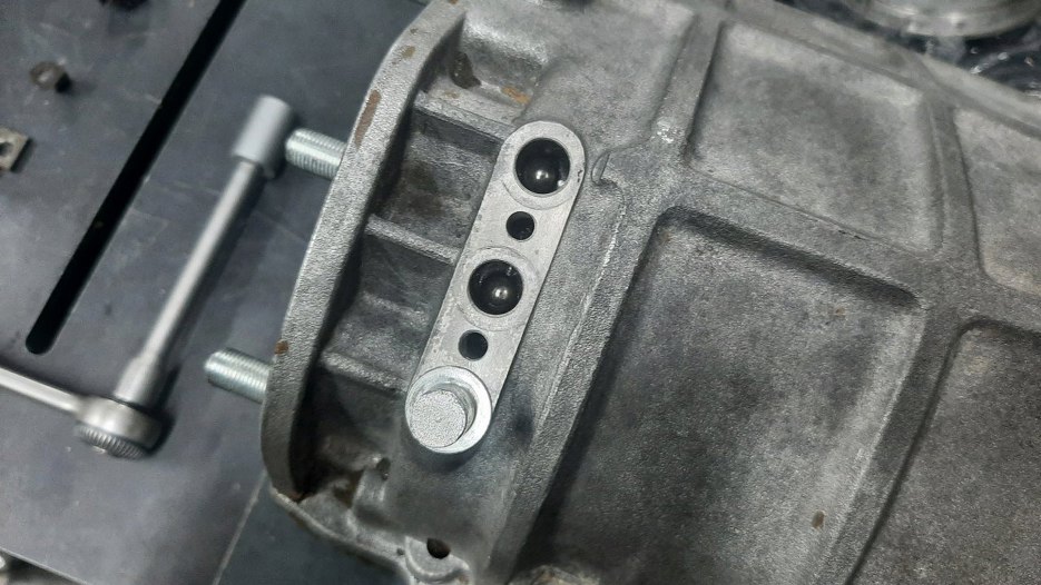 Teraz mogę założyć tymczasowo kulki, a potem i sprężynki blokujące wybieraki biegów w odpowiednich pozycjach.