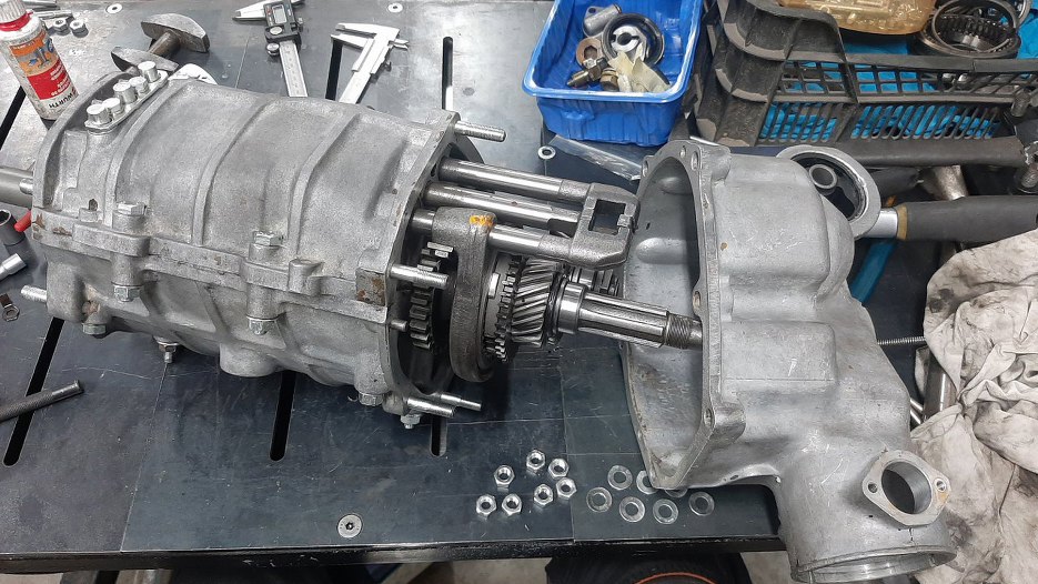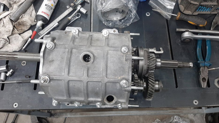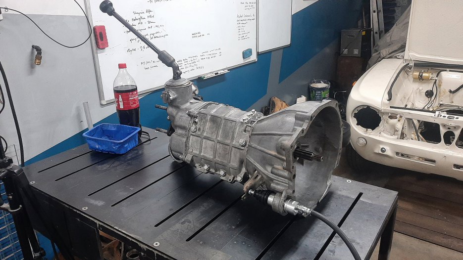 I gotowa do założenia skrzynia. Założyłem na chwilę lewarek i na sucho to biegi wchodzą. Mam nadzieję, że będzie dobrze działać :).