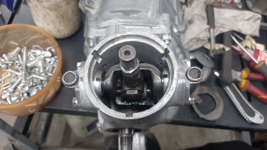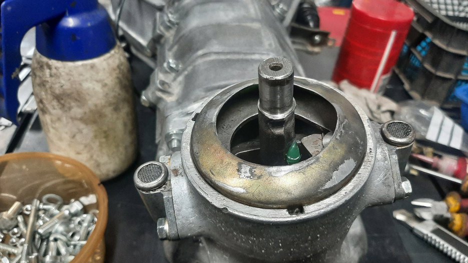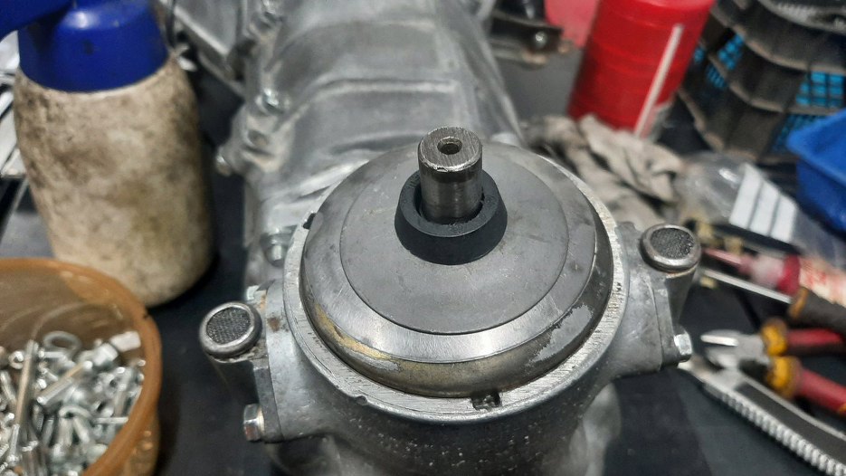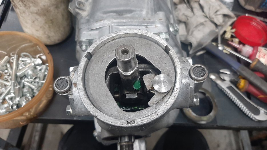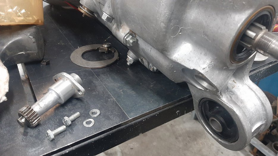 Przerzuciłem się teraz na drugą stronę skrzyni. Do zamontowania jest napęd linki prędkościomierza.