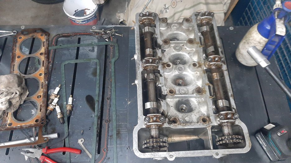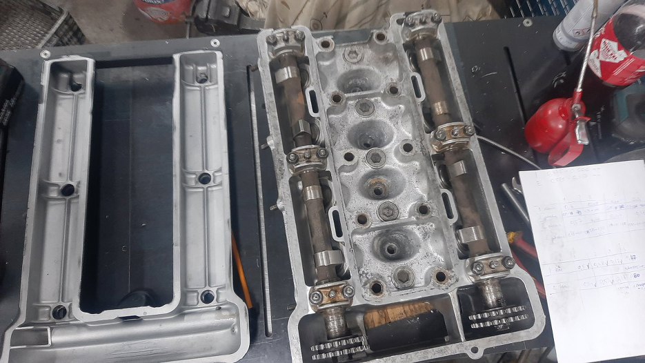 W końcu odało się przykręcić wałki rozrządu. Wtedy pomierzyłem luzy zaworowe i zacząłem się drapać po głowie, bo były zupełnie inne niż trzeba (a pastylek nie pomieszałem na pewno przy myciu). Po sprawdzeniu, czy ja to dobrze mierzę okazało się, że tak. Czyli po prostu tu były takie luzy od czapy. Potem na kartce obok wypisałem sobie jakie mam obecnie luzy, jakie powinny być, oraz jakie mam użyte pastylki regulacyjne. Po poprzekładaniu pastylek z miejsca na miejsce udało się osiągnąć stan, że tylko dwa zawory zostały do wyregulowania. Musiałem dokupić tylko dwie pastylki!