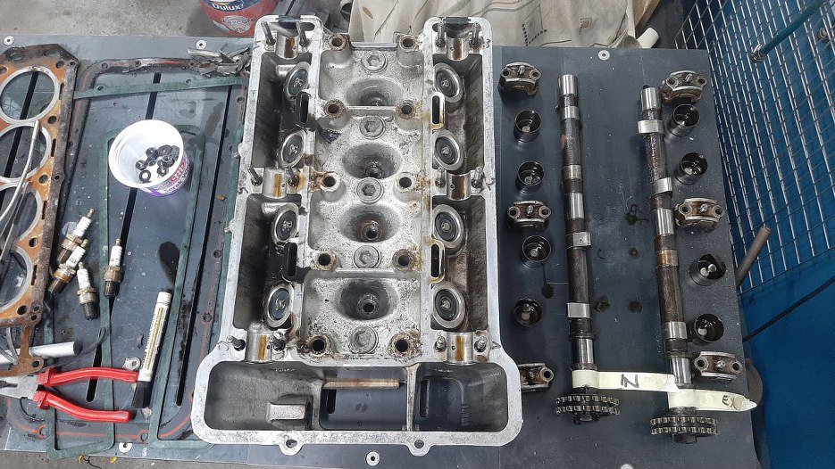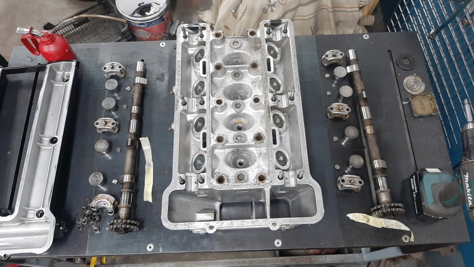 Odkręciłem wałki i wyjąłem popychacze zaworowe razem z pastylkami regulacyjnymi. Zaworów nie rozpinam, nie jest to konieczne.