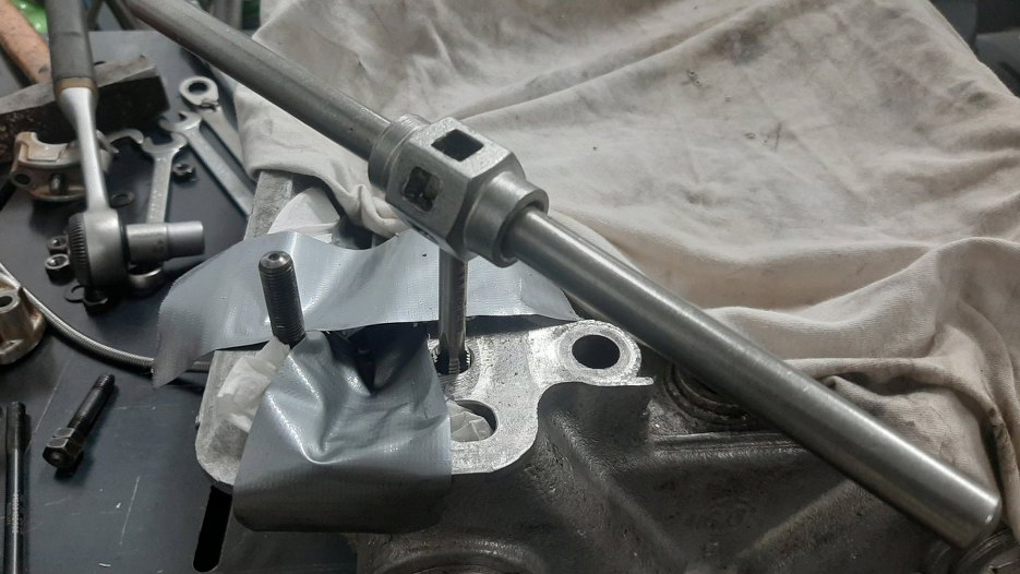 W każdym razie gwint w głowicy trzeba naprawić. Wstawię tam helicoile, czyli najpierw rozwiercam otwór, potem gwintuję...