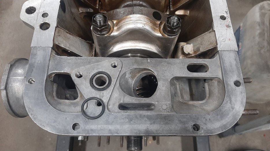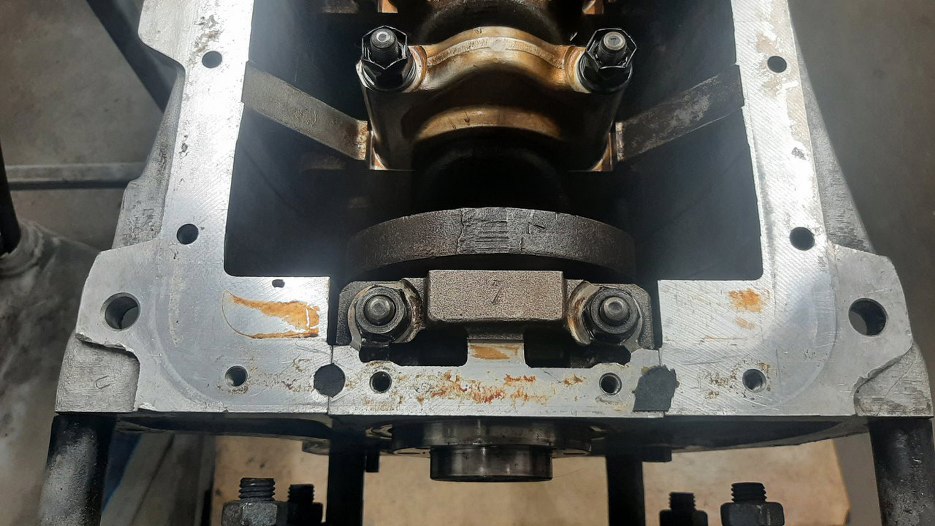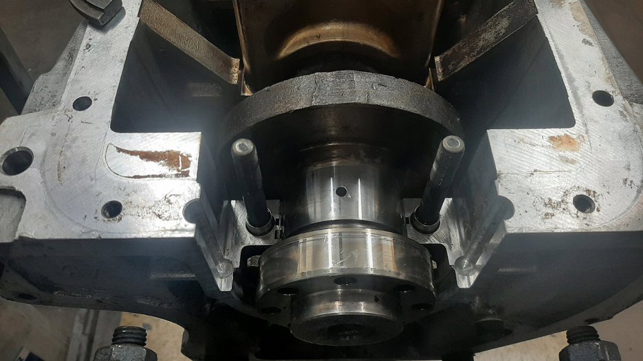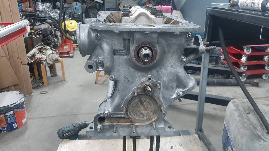 Nadszedł czas, żebym się zajął uszczelniaczem tylnym wału korbowego. Po opisie w serwisówce jakoś wcale na to nie miałem ochoty... Muszę jednak wyjąć tą podporę wału korbowego, żeby się tam dostać.