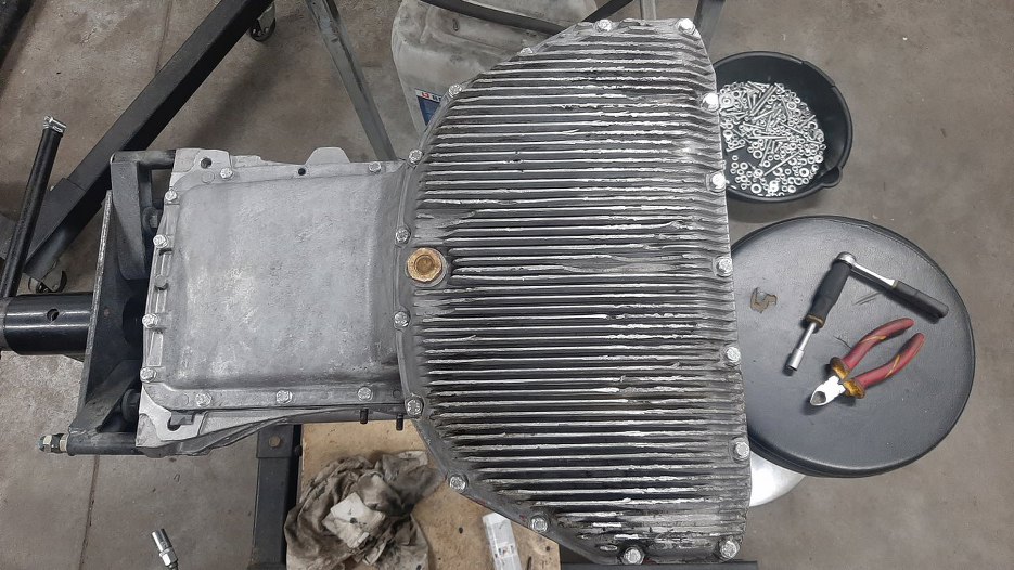 Po długiej i nierównej walce z bardzo, bardzo trudno dostępnymi niektórymi śrubami dokręciłem miskę. Teraz pora na przykręcenie jej drugiej części.