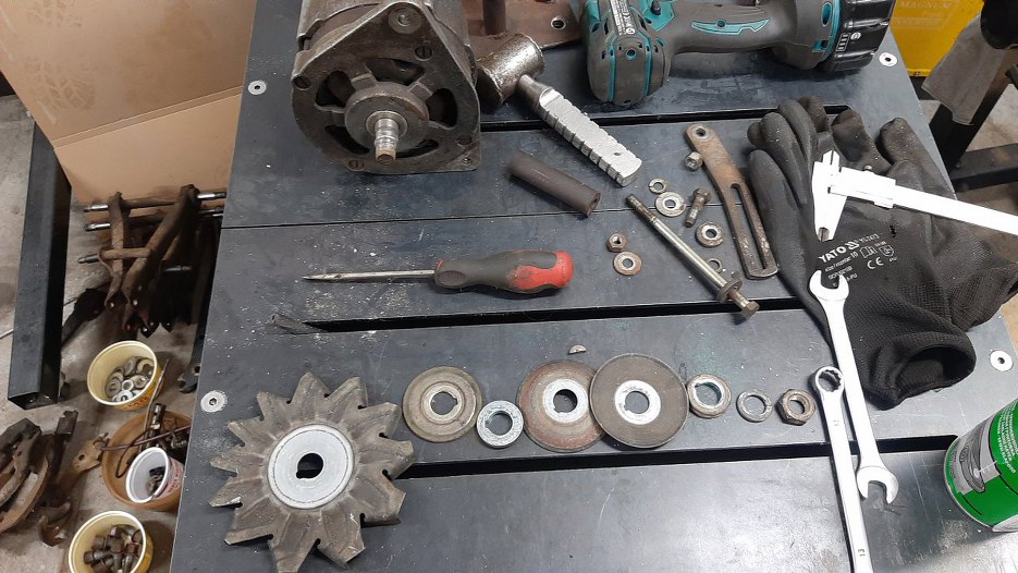 Pora na plan B, czyli dobrze mi znany alternator Boscha z Forda. Chyba Granady z V6, ale to w sumie dość nieistotne bo przecież i tak nie pasuje, nie? Żeby nie było tak różowo, to ten alternator jest w dość podobnym stanie. Do niego jednak są dostępne części. No to rozkładamy drugi alternator. Najpierw kółko pasowe i wiatrak.