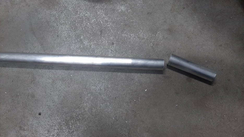 Jednocześnie chcę zrobić podkładkę dystansową zamiast tamtych sześciu. Odciąłem zatem kawałek aluminium z pręta.